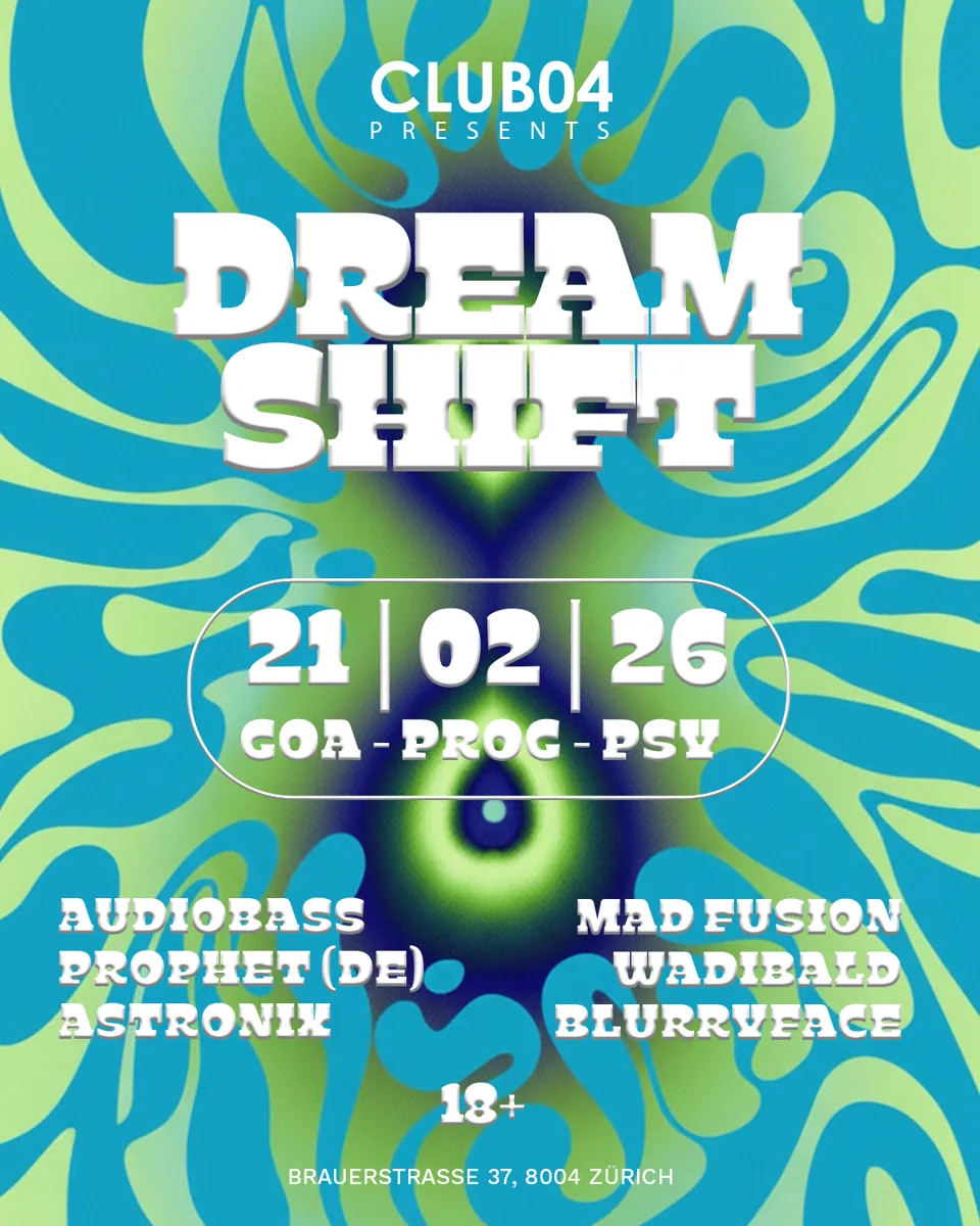 Mach dich bereit für eine Nacht, in der Realität und Traum ineinander verschwimmen. DREAM SHIFT bringt pulsierende GoA-, Progressive- und Psytrance-Vibes in den Untergrund von Zürich und öffnet ein Portal in eine andere Dimension.